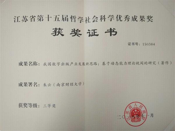 我院朱云教授荣获江苏省第十五届哲学社会科学优秀成果奖三等奖
