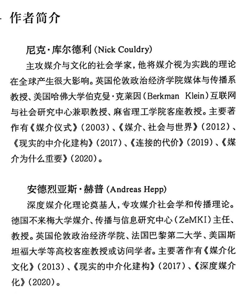 (33)刘泱育:《库尔德利、赫普的<现实的中介化建构>》,见《中国新闻传播教育年鉴.2025》,武汉大学出版社2025年版。