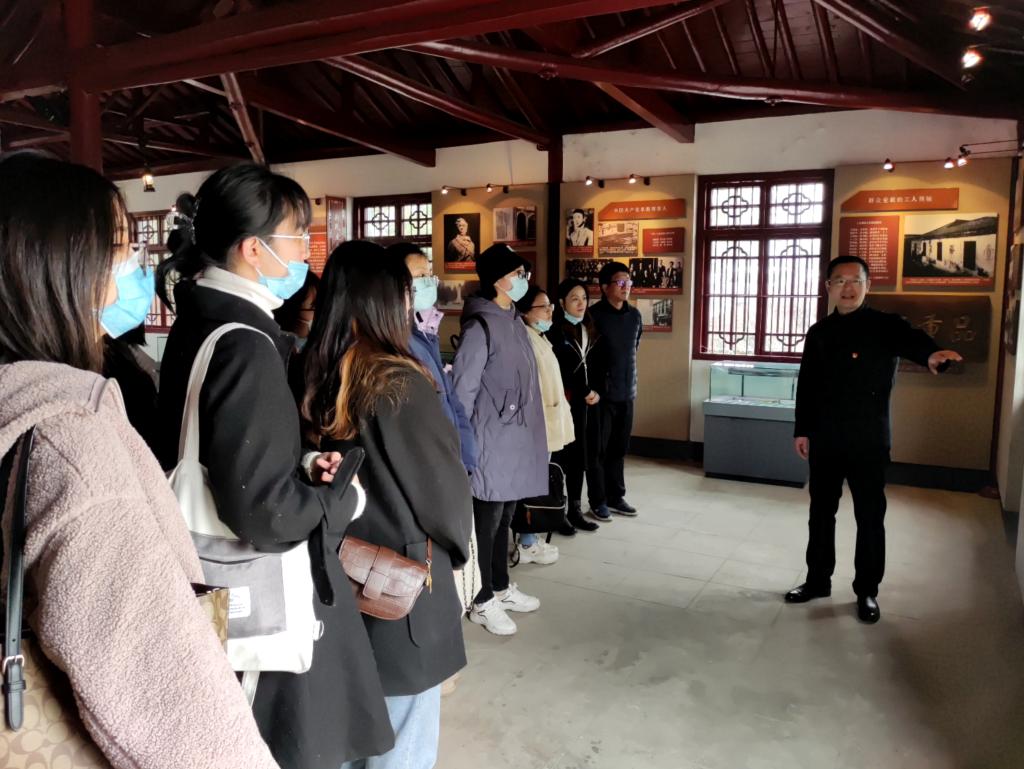 南京工运纪念馆是两浦铁路工人“二七”大罢工指挥所旧址,也是南京地区第一个中共党小组和党支部的诞生地。高晓东书记首先向师生党员介绍了中国共产党早期领导人、中国工人运动先驱王荷波同志的事迹和早期浦镇机车车辆厂工人运动的发展历史。1922年6月,王荷波加入中国共产党,随即建立浦镇党小组,成为南京第一个党的基层组织;1923年2月,王荷波在这里召开两浦地区党员、工会骨干紧急会议组织两浦铁路工人举行大罢工。高晓东书记强调,中国共产党以实现中华民族伟大复兴为己任,从成立之初就注重将先进的科学理论与具体的社会实践相结合,深入工人群众,广泛团结社会各阶层力量共同奋斗,今天我们来到纪念馆开展实景学习,追根溯源,缅怀先烈,就是要从红色历史中汲取红色奋斗精神,将党史学习的成果转化为今天国家民族社会发展而努力的实践动力。