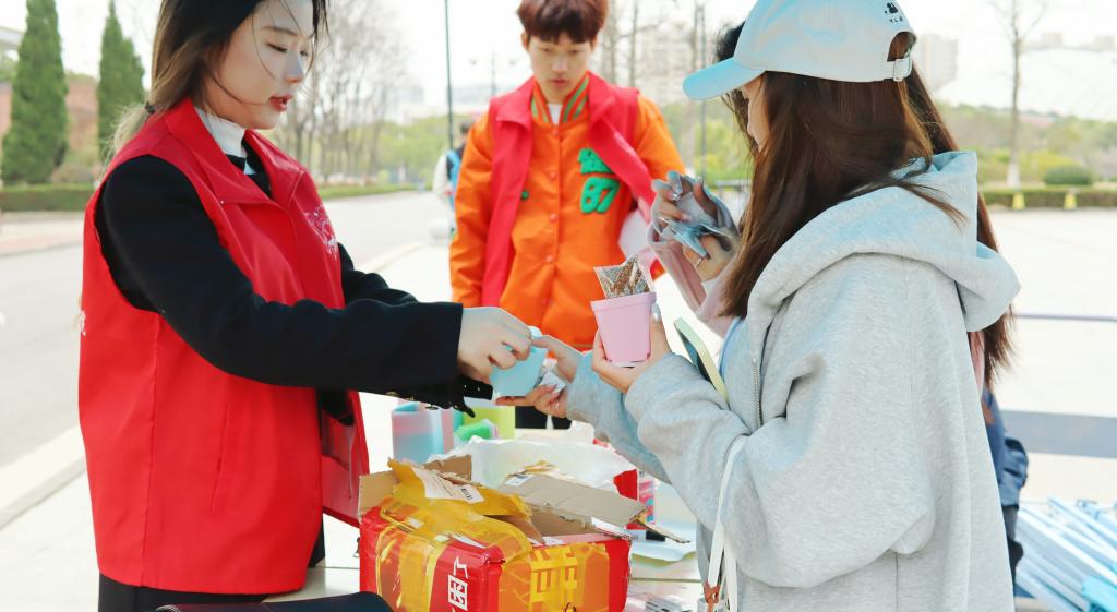 通过线上线下同步宣传,同学们12日纷纷来到现场踊跃参加,将播种绿色付诸实践。活动现场,环保志愿者大力宣传生态文明小知识,让同学们意识到,“要像保护眼睛一样保护生态环境,像对待生命一样对待生态环境”。播种志愿者引导同学们在主题海报上签名留念,分发绿植种子和土壤、花盆,并指导同学们挥动铁铲,浅挖土坑,播种绿色,施肥浇水。同学们纷纷表示,会把盆栽带回宿舍,用心照料。一想到自己亲手种下的种子有一天能够破土而出,焕发生机,营造出一片绿意,同学们感到既充实又欣慰。