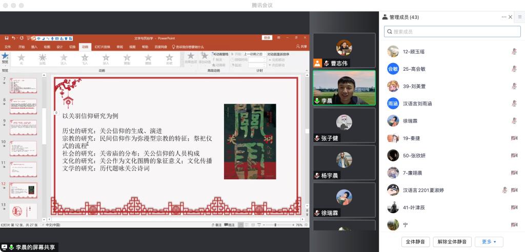 11月28日下午15:30,苏州大学文学院副教授李晨为新闻学院作了题为《桴鼓相应:文学与民俗学》的线上讲座,新闻学院本科生在线参加,此次讲座由新闻学院院长助理、新闻系主任曹志伟主持。