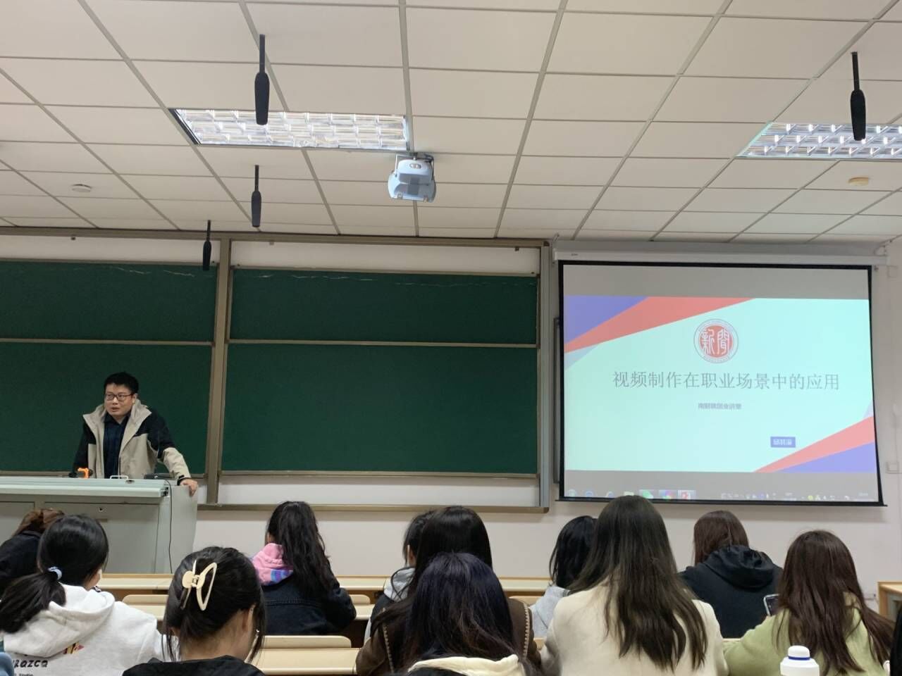 11月10日上午,我院在仙林校区德正楼209教室举办“视频制作在职业场景中的应用——南财就创业大讲堂活动”主题讲座。讲座由我院网媒系教师邱其濛主讲,21级、22级、23级本科生参加。