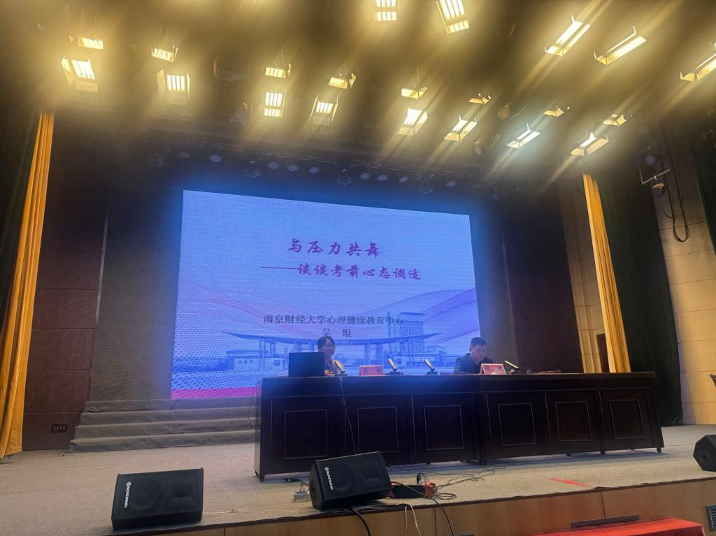 为舒缓学生考前心理压力,做好心理辅导及心态调节工作,4月30日下午,我校心理健康教育中心吴垠老师到江苏省扬中高级中学,为全体高三学生开设《与压力共舞——考前心态调适》讲座,张祥副校长主持活动,生源基地专员新闻学院季芬老师参加。