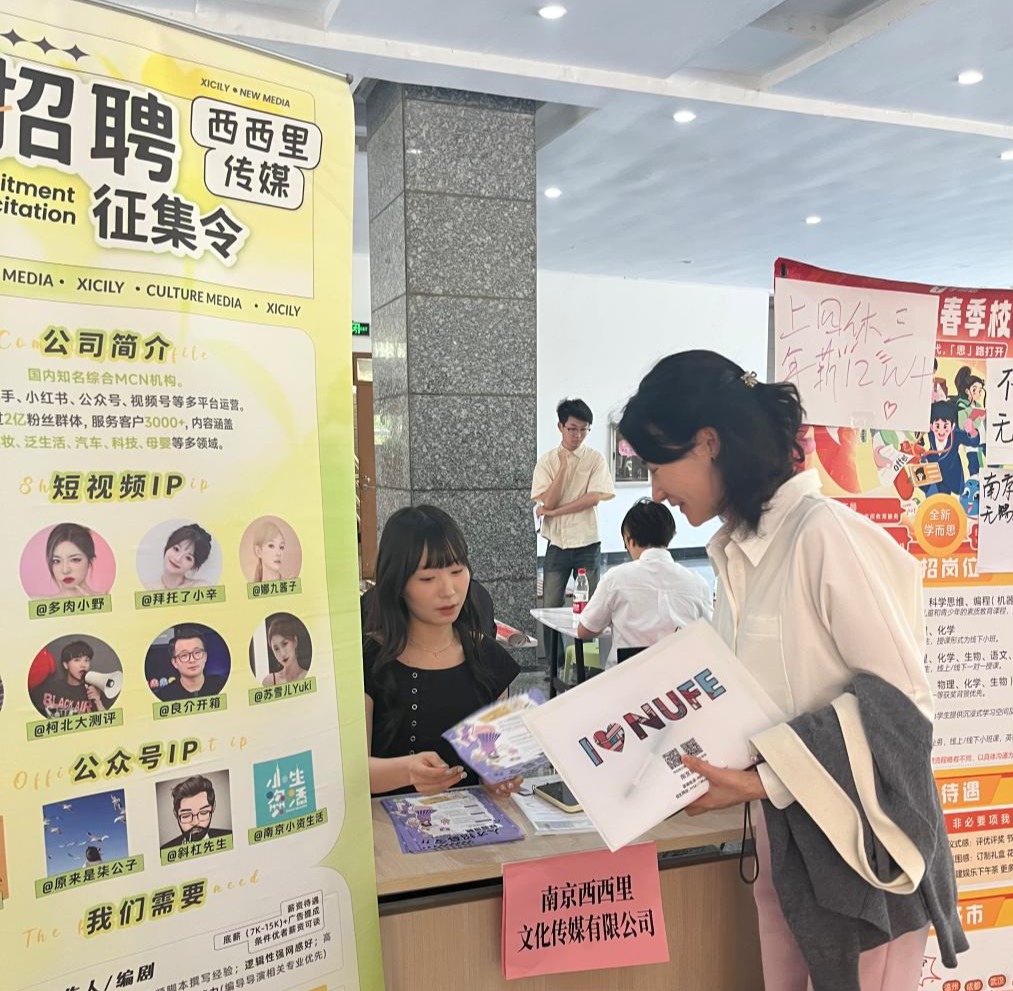 为抢抓毕业季促就业工作关键期,促进毕业生顺利就业,5月10日下午,由我校大学生就业与创业指导中心指导,新闻学院与应用数学学院、营销与物流管理学院、信息工程学院联合主办的“才聚德业,‘职’等你来”专场招聘会在仙林校区德业楼一楼举办。新闻学院党政领导深入招聘会现场,与参会企业代表深入交流,了解单位用人需求。学院辅导员到场指导学生参加双选,2024届毕业生参加招聘会,部分低年级学生到场观摩。