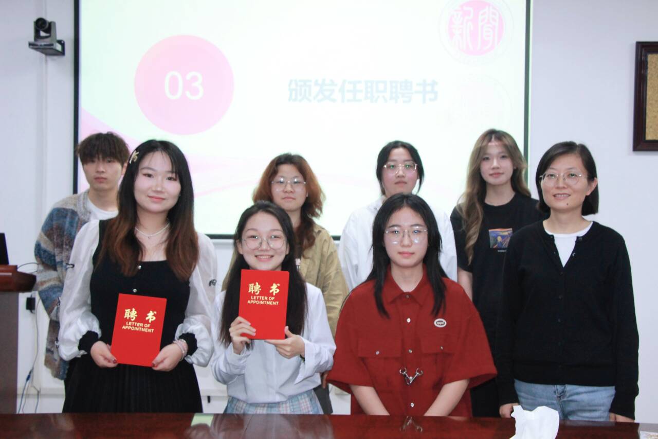 学院分团委书记毛颖老师为第十八届学生会、分团委干部颁发聘书,合影留念。