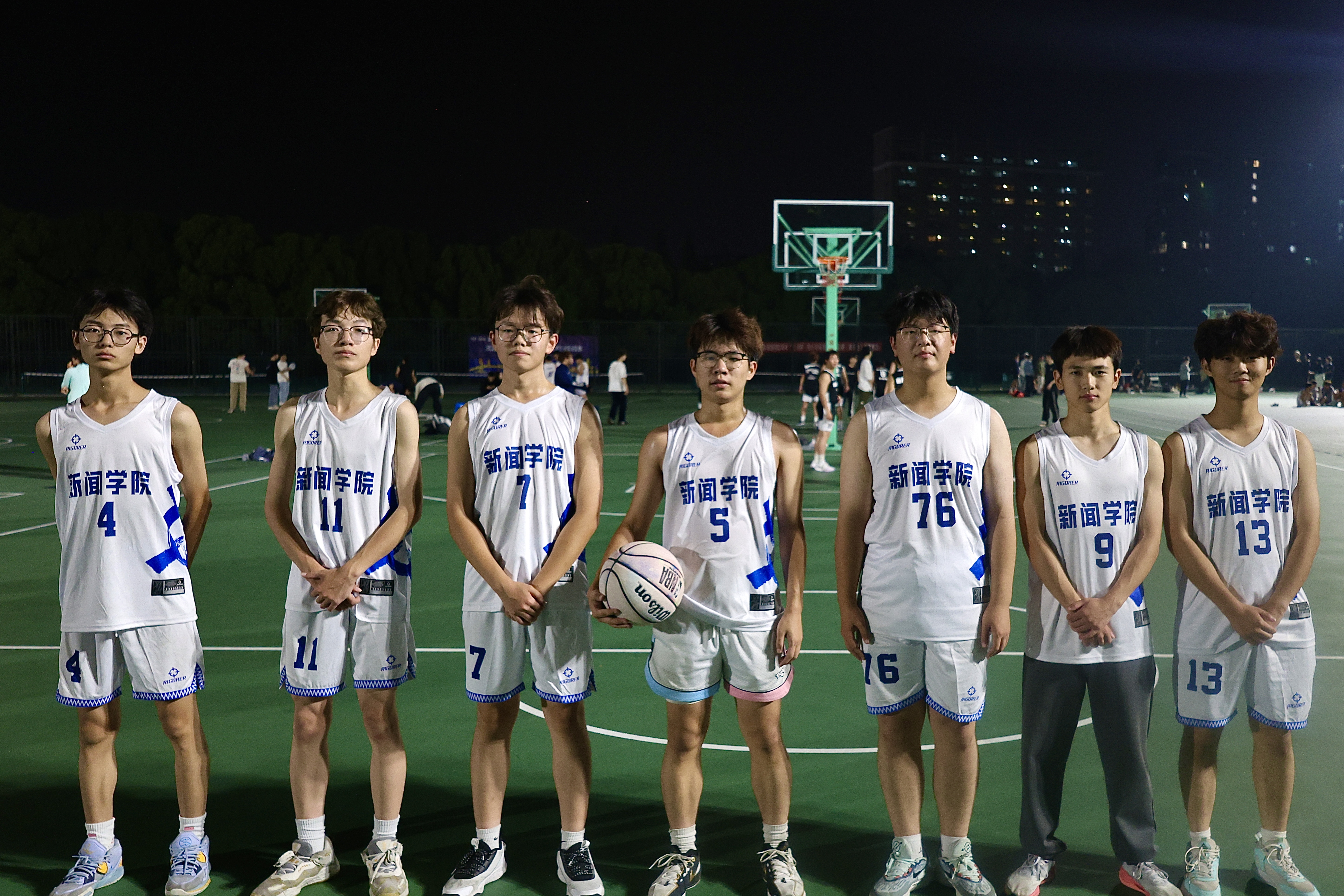 新闻学院代表队中,征子程同学担任球队领队,叶津辰同学担任主教练,仲慧成、刘成、张行知、宋文川、薛熠辰五名同学组成首发阵容,朱新坤、廖麒麟同学作为替补队员参赛。全场比赛以刘成同学为进攻端首要火力点,在防守端执行二三联防战术。