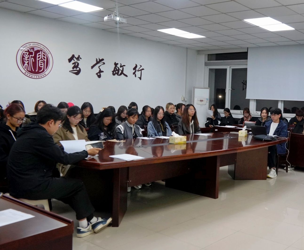第一项议程为新闻学院学生会工作总结,各部门负责人介绍过去一年的工作情况、存在的问题以及改进措施,以进一步提高工作效率、增强工作能力。