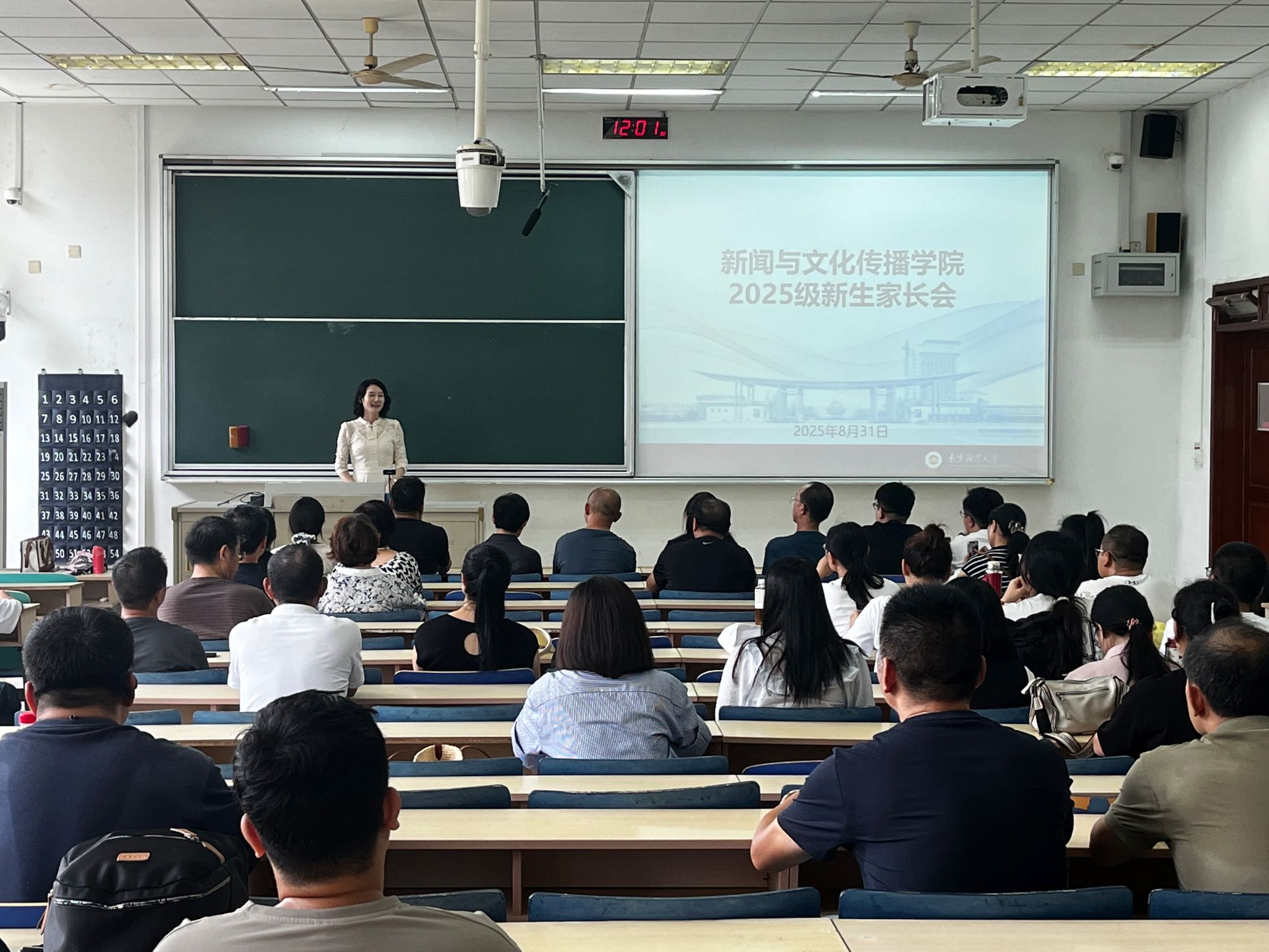 学院青年志愿者在学院报到处、西苑宿舍区为新生们热心服务,学院党委书记陈丹、院长刘泱育在迎新现场看望新生及家长,与大家深入交流。中午在德正楼101教室,学院组织召开新生家长会。陈丹书记代表学院对新生表达了热烈欢迎和诚挚祝福,刘泱育院长介绍了学院发展和人才培养情况,挂职副院长、中文系主任王华,新闻系主任曹志伟,网媒系主任夏羿等三位老师分别介绍了专业相关情况,并围绕家长关心的问题进行了详细的解答和交流。