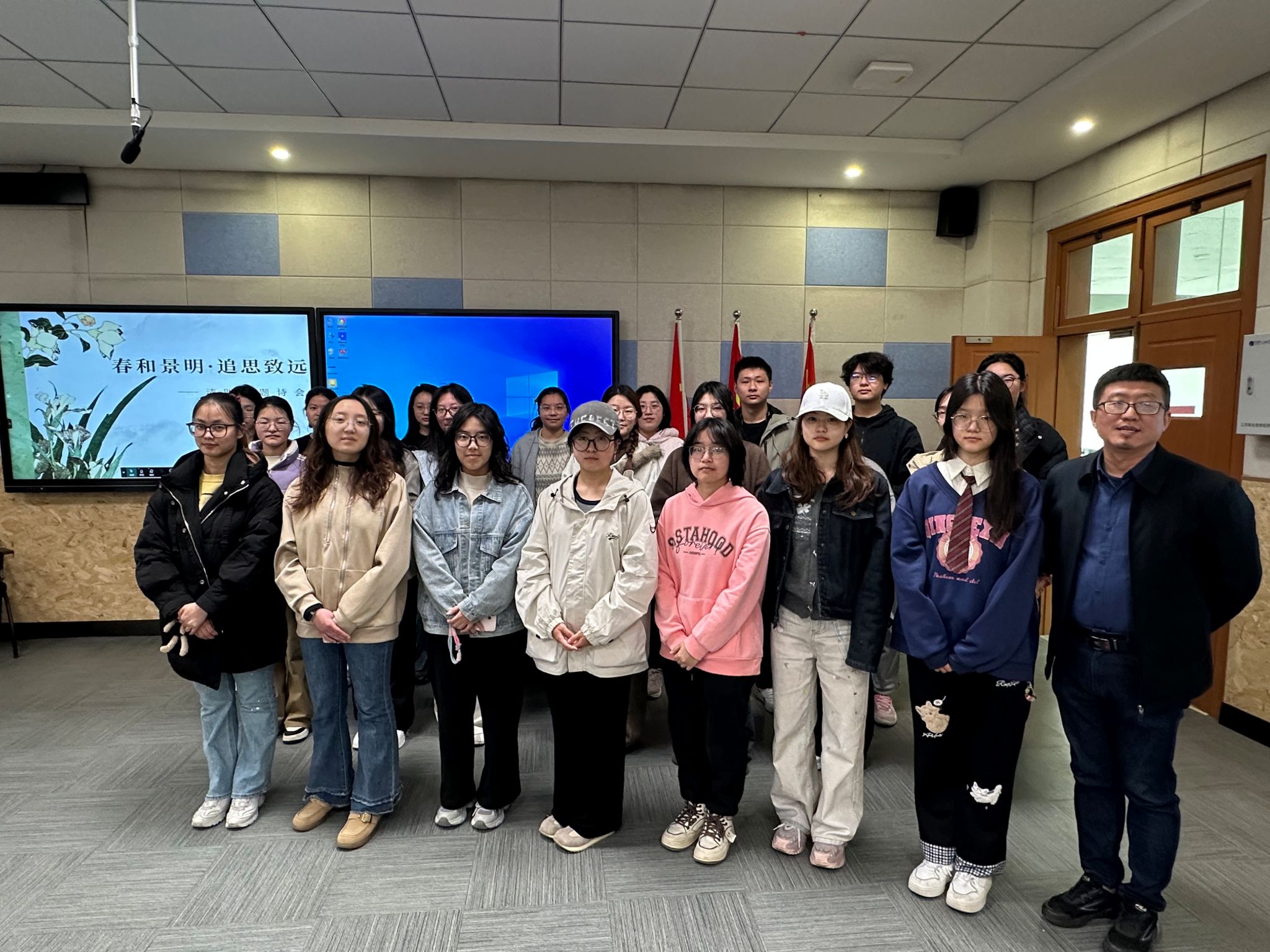 3月27日中午,清明节前夕,弘扬中华优秀传统文化,纪念革命先辈,7790cnm必发集团在仙林校区德正楼101教室举办“清明雨上,追思寄情”清明节主题诗会,学院党委副书记李博伟,学生党员代表,院学生会学生及部分本科生参加。