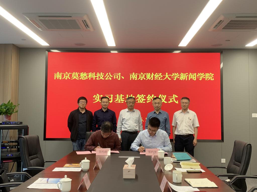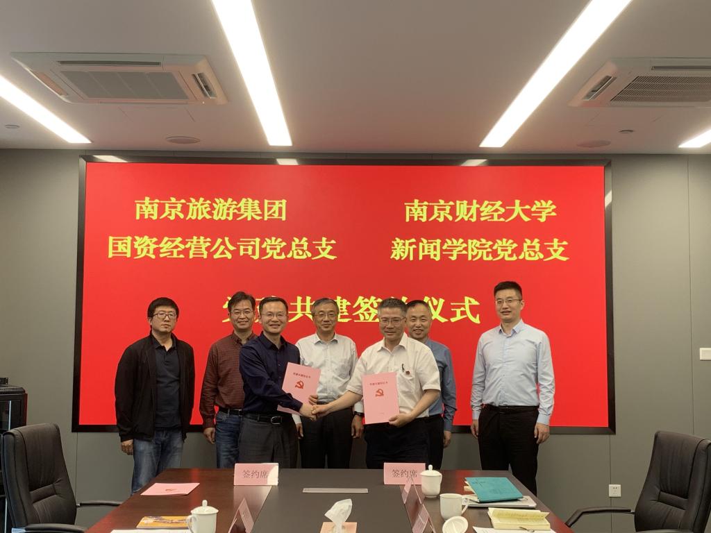 座谈会上,苏强董事长首先介绍了南京旅游集团的总体概况以及南京国有资产经营有限责任公司和南京莫愁智慧信息科技有限公司两家企业的具体发展情况,鲍全书记介绍了南京国有资产经营有限责任公司党总支概况和党建工作开展情况;宋祖华院长介绍新闻学院整体发展和人才培养情况;高晓东书记介绍了新闻学院党建工作。在与会双方代表的见证下,苏强董事长代表南京莫愁智慧信息科技有限公司与宋祖华院长共同签订就业实习基地协议,鲍全书记代表南京国有资产经营公司党总支与高晓东书记共同签订党建共建协议。
