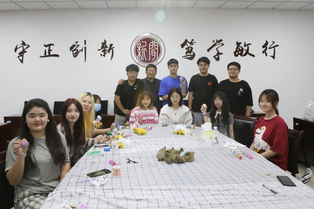 少数民族同学们在仙林校区德正楼507会议室画鸭蛋、吃粽子,充分发挥自己的想象力,在欢声笑语中体会不同民族文化的丰富多彩。壮族同学陈阳洋说:“我们在端午节会用艾叶洗澡,也会吃像青团口感一样的糕点。”土家族同学吴田熙说:“我们土家族靠山吃山,端午节时老一辈会带新一辈去山里摘艾叶,我们更多的时候会包白粽。”藏族、哈萨克族同学还用自己民族的语言为大家献上了祝福。