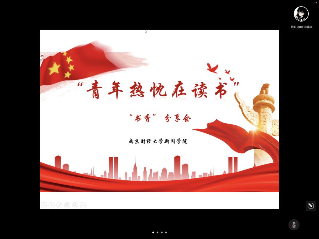 4月21日晚,第27个世界读书日到来之际,新闻学院举办了以“青年热忱在读书”为主题的书香分享会,邀请新闻系主任曹志伟老师与同学们进行了线上交流。