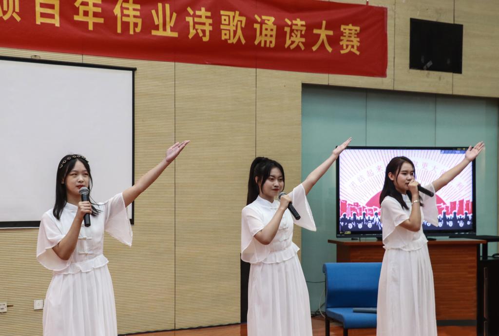 经过初赛视频作品的筛选,共有经济学院、财税学院等7个学院的十三组作品进入决赛。随着财税学院高浩然、于海欣两位同学饱含深情的朗诵《我的祖国》,为师生观众拉开了比赛帷幕。“丹心绘锦绣,长吟盛世歌”,在参赛选手的朗诵过程中,大家仿佛听到了黄河之水奔涌而来的壮阔,听出一封封红色家书的铁骨柔情,看到长津湖战役中志愿军战士的钢铁意志……十三组选手风格各异,用抑扬顿挫的朗诵和激昂澎湃的情绪,致岁月铅华,敬红色传承。同学们以青春之声,赓续红色血脉,颂扬百年大党之风华正茂。