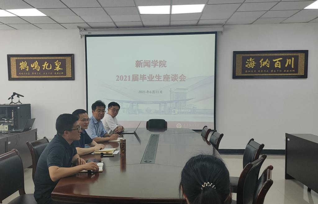 6月11日下午,新闻学院在仙林校区德正楼507会议室召开2021届毕业生座谈会,新闻学院党总支书记高晓东、院长宋祖华、党总支副书记李博伟、院长助理、新闻系主任曹志伟与2021届毕业生同学参加了本次的座谈会。