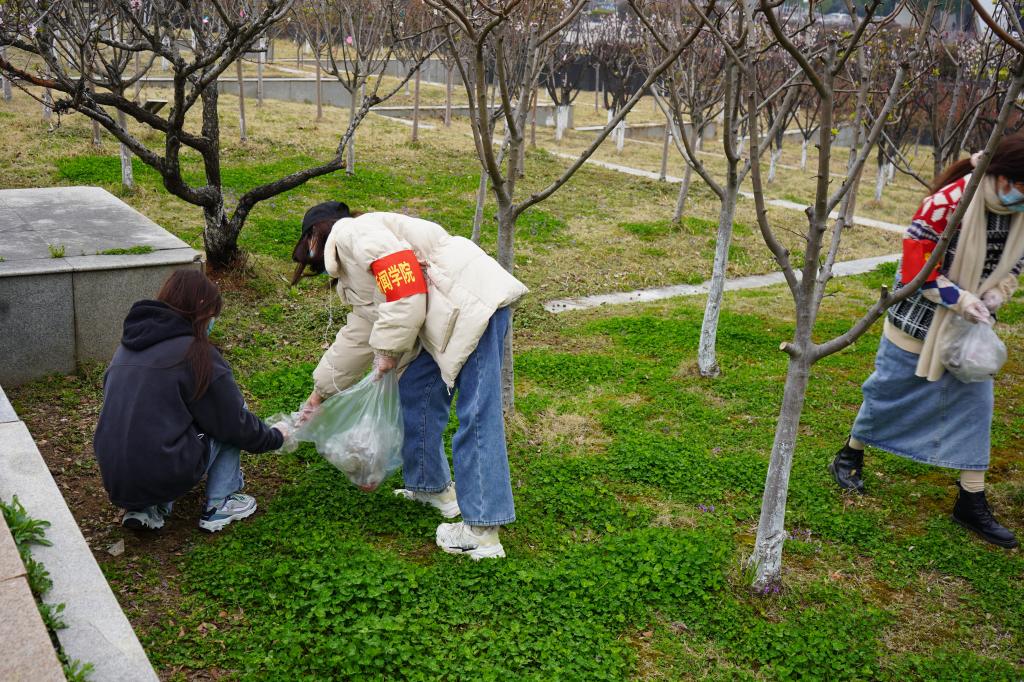 首先,学生志愿者在校园里的各个角落里捡拾垃圾,随后又前往新闻学院、艺术设计学院及食品科学与工程学院教师办公室开展了志愿义务清扫活动。