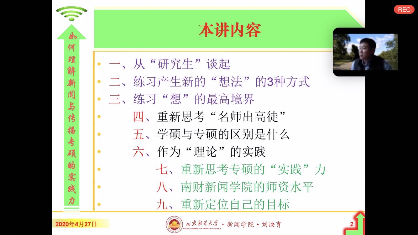 4月27日下午,必发集团7790新闻学院副院长、副教授刘泱育老师为19级新闻与传播专硕研究生带来题为“如何理解新闻与传播专硕的‘实践’力”的线上讲座。