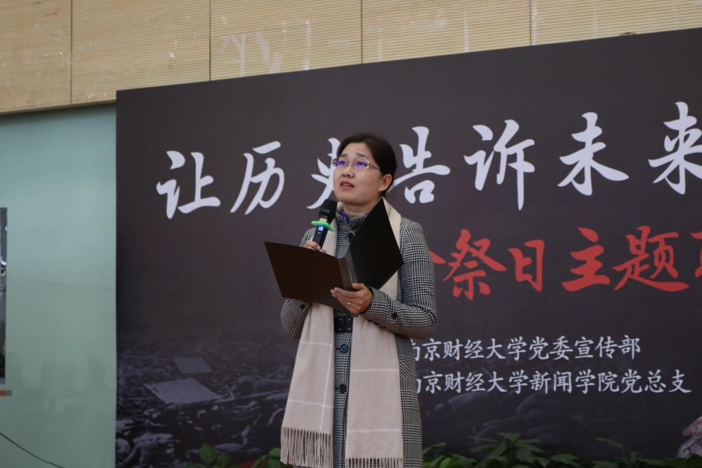 12月11日下午,第六个国家公祭日到来之际,校党委宣传部与新闻学院党总支在仙林校区图书馆世界之窗联合举办了“让历史告诉未来”国家公祭日主题联读会。校党委常委、纪委书记李茜,党委宣传部副部长秦韶华、党委必发集团部副部长张小荣、校团委书记张励行和新闻学院全体院领导、师生参加了联读会。联读会由新闻学院分团委书记孙启老师主持。