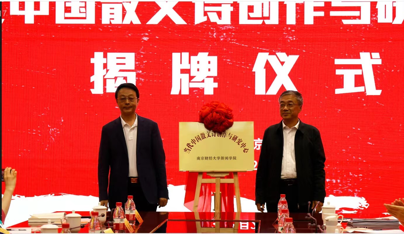 李茜和周庆荣共同为“当代中国散文诗创作与研究中心”揭牌。
