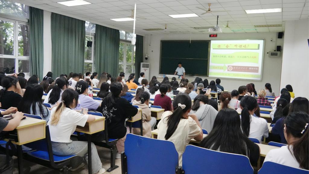 6月11日晚,新闻学院在仙林校区德业楼103教室举办了“师说新语——博雅讲堂” 第三场讲座,本次讲座由新闻学院副院长(主持工作)刘泱育担任主讲人,以“你‘会’听课吗?”为主题,深入探讨了大学学习中的思维训练和学习方法。讲座由新闻学院党委副书记李博伟主持,新闻学院团委书记毛颖、23级班主任张与弛、胡攀峰及2023级本科生参加。