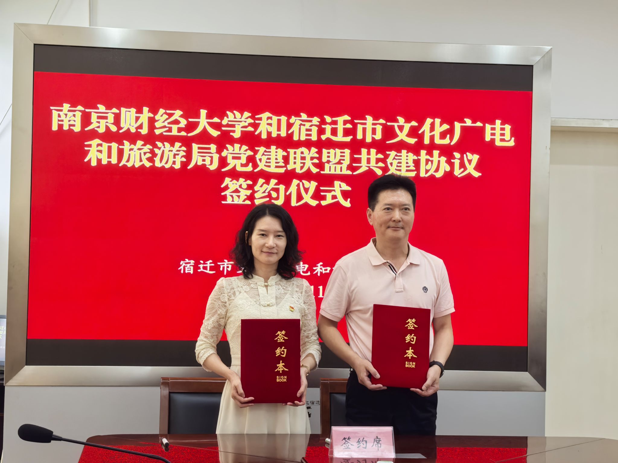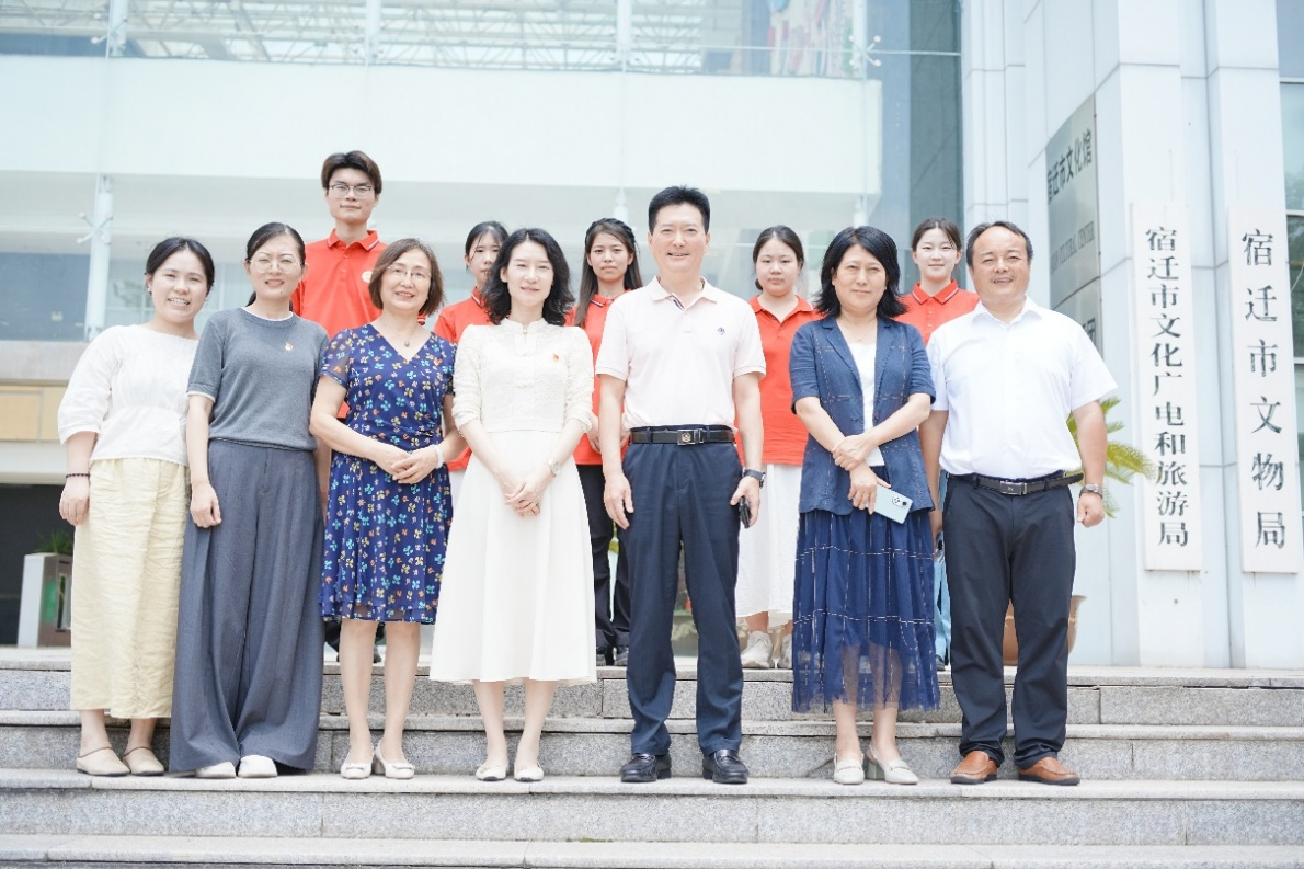 签约仪式上,刘冰副局长代表宿迁市文旅局对陈丹书记一行的到来表示欢迎,并从“重点工程建设、文旅融合推进、办好运河活动”三方面展示了宿迁市丰富的文化旅游资源和发展现状。陈丹书记介绍了学院在党建品牌、学科建设、人才培养等方面的基本情况,希望通过此次交流,为双方今后合作奠定坚实基础,依托宿迁市深厚的大运河历史文化底蕴,结合南财新闻传播学科优势,通过党建共建,实现资源互补、人才共育,助力地方文化传承。