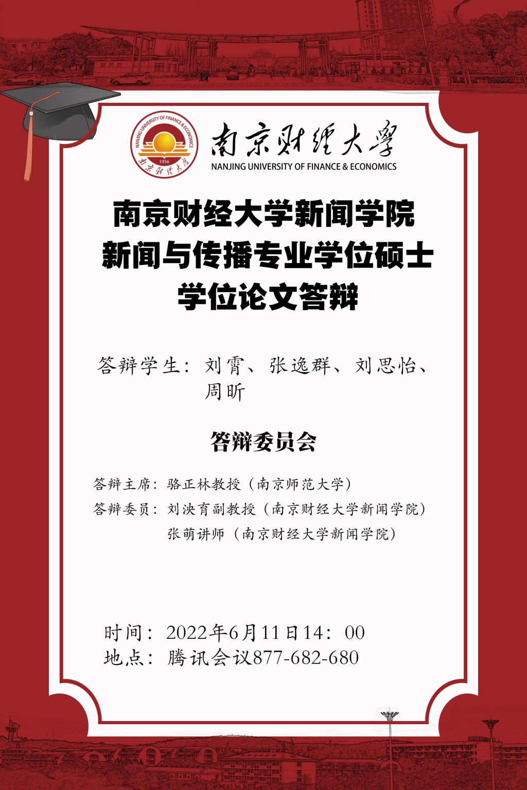 2022年新闻学院研究生论文答辩即将开始,本次答辩采用学院分组、线上答辩的方式进行。请各位答辩学生做好准备。欢迎非毕业班研究生来旁听学习。具体时间安排见下图。