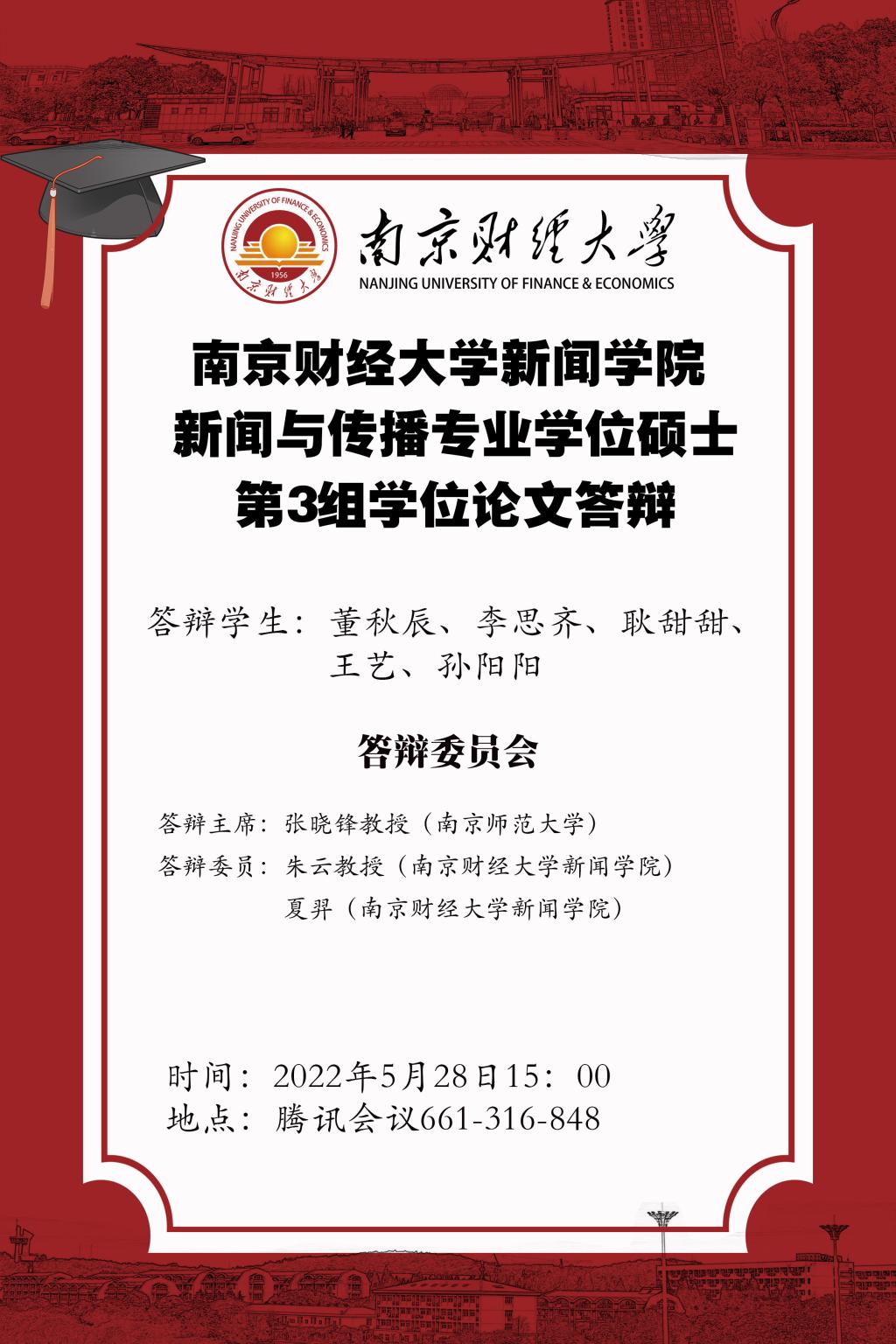 2022年新闻学院研究生论文答辩即将开始,本次预答辩采用学院分组、线上答辩的方式进行。请各位答辩学生做好准备。欢迎非毕业班研究生来旁听学习。具体时间安排见下图。