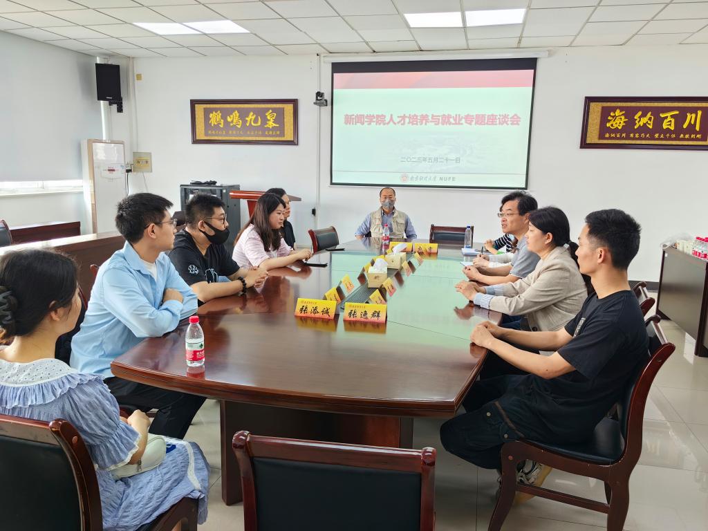 2023年5月21日上午,新闻学院在德正楼507会议室召开专题座谈会,就新闻传播学专业的人才培养和就业需求等问题向行业导师征求意见和建议。来自新华报业、中国电信南京分公司、江苏龙虎网等单位的11名行业导师参加会议,学院院长宋祖华、副院长刘霞云、院长助理曹志伟及相关专业教师参加了座谈会。