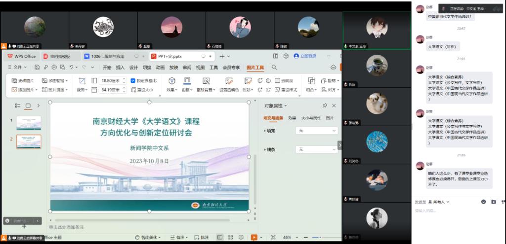 10月8日晚,新闻学院中文系以线上会议的方式召开《大学语文》课程方向优化与创新定位研讨会。新闻学院副院长刘霞云、中文系系主任王华以及全体教师参加会议。会议由新闻学院副院长刘霞云主持。