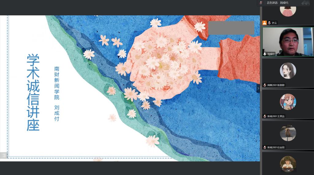 2024年3月25日19:30,新闻学院通过腾讯会议线上开展了2024届本科生毕业论文(设计)学术诚信教育讲座,新闻学院本科教育教学督导、学术委员会成员刘成付副教授受邀担任主讲人,2024届毕业班学生参加讲座。此次讲座由刘霞云副院长主持。