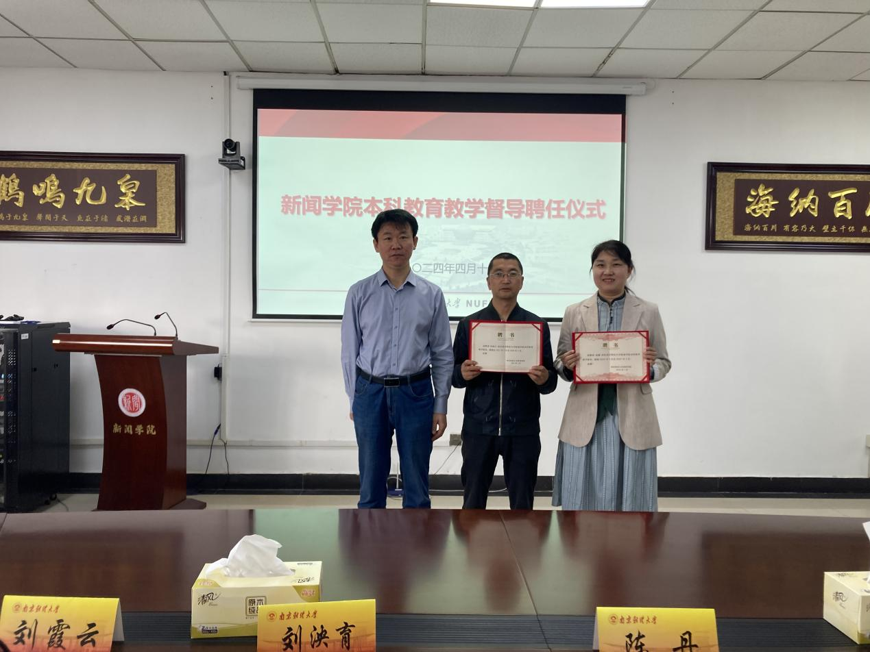 为一步健全和完善本科教育教学质量保障体系,加强本科教育教学质量监控,根据必发集团7790关于本科教育教学督导的相关要求,新闻学院研究决定聘任刘成付、赵娜两位教师担任院级本科教育教学督导。4月10日下午,聘任仪式在德正楼507会议室举行,全体教职工参加仪式活动,仪式由李博伟副书记主持,刘霞云副院长宣读了聘任文件,刘泱育副院长(主持工作)为督导颁发聘任证书。
