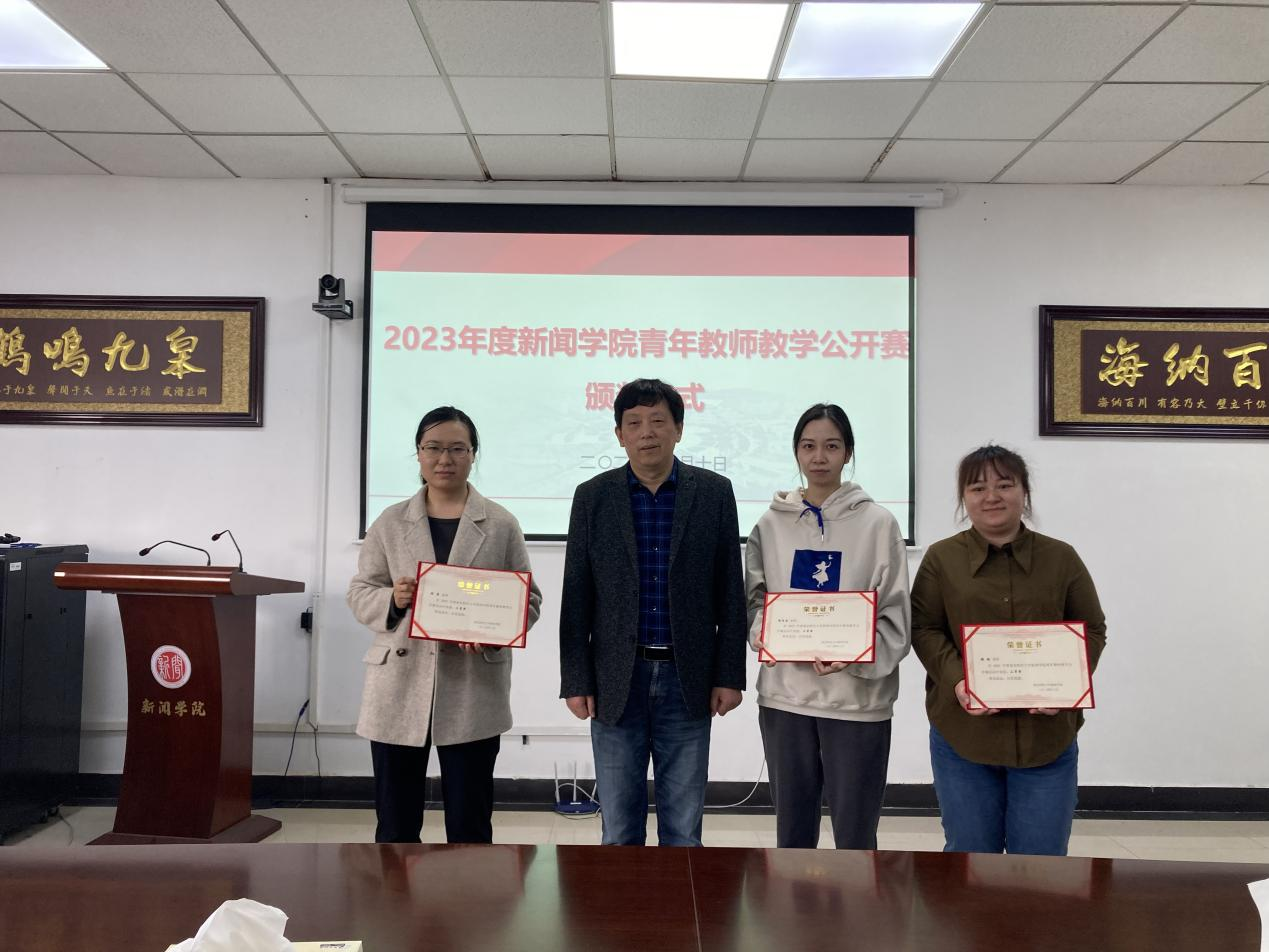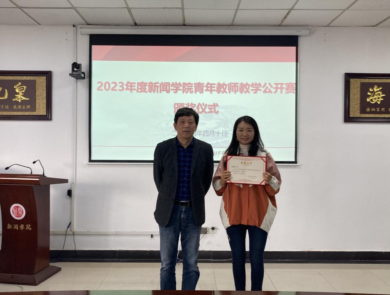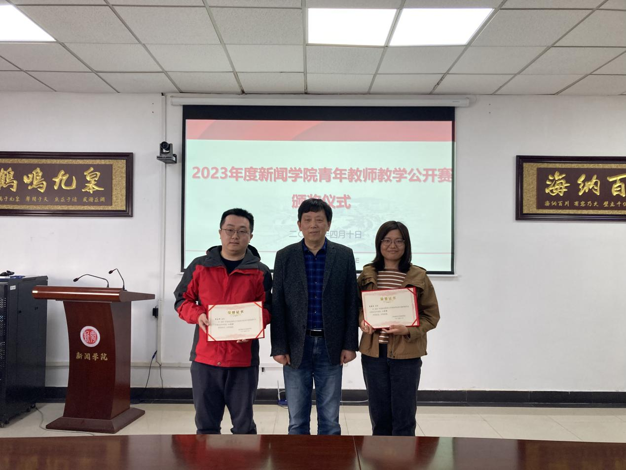 为深入学习贯彻习近平新时代中国特色社会主义思想,落实全国教育大会精神及中共中央、国务院《关于全面深化新时代教师队伍建设改革的意见》要求,进一步激励、引导广大教师重视和投身本科教学,提升本科教学质量,根据《必发集团7790教师教学公开赛竞赛管理办法》(南财大教字〔2016〕1651 号)精神和《2023年度新闻学院青年教师教学公开赛实施方案》,新闻学院组织实施了2023年度青年教师教学公开赛活动,共评出一等奖1名,二等奖2名,三等奖4名。4月10日下午,在德正楼507会议室举行了2023年度新闻学院青年教师教学公开赛颁奖仪式,全体教职工参加仪式活动,仪式由李博伟副书记主持,刘霞云副院长宣读了表彰文件,校督导黄建远教授为获奖老师颁发证书。