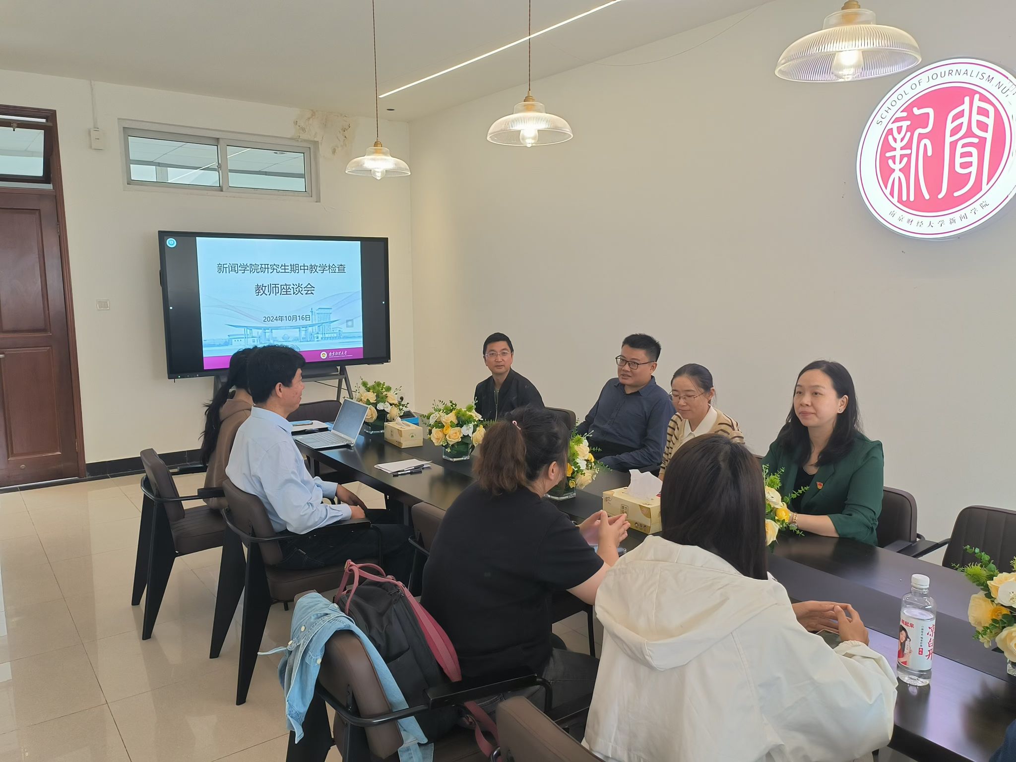 根据本学期研究生期中教学检查工作部署安排,10月16日,新闻学院在德正楼503会议室召开研究生任课教师座谈会。副院长(主持工作)刘泱育出席会议。全体研究生任课教师、研究生教学秘书李晞参加会议。会议由副院长肖璐主持。