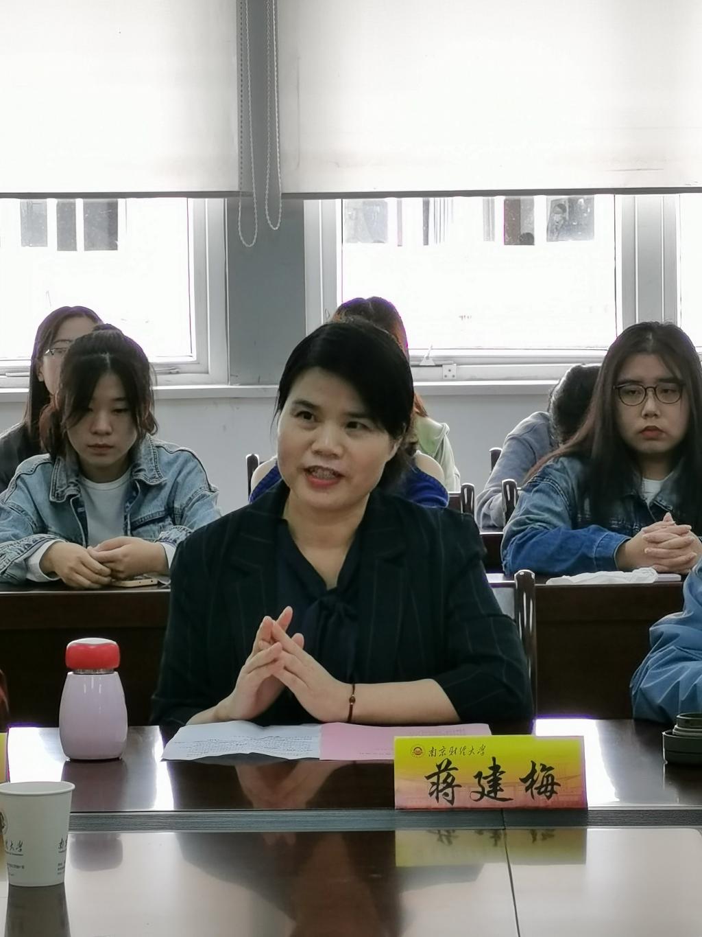在听完两位学院领导发人深省的讲话后,导师代表朱云教授和蒋建梅教授也进行了各自的发言:朱云教授经验丰富,德高望重,以自身经历教导同学们只有加强自身心理建设才能更好地搞好学业,同时也提出了充分利用业余时间的概念;蒋建梅教授则较为谦虚,以自嘲式介绍开头,再结合自身实际跟同学们讲述自身的教学和学习经验,告诫同学们不能只看到地上的六便士,也应看到漫天的月光,同时鼓励大家走出仙林,体验南京的人文情怀。二位硕导的发言十分精彩,同学们都感到收获良多。