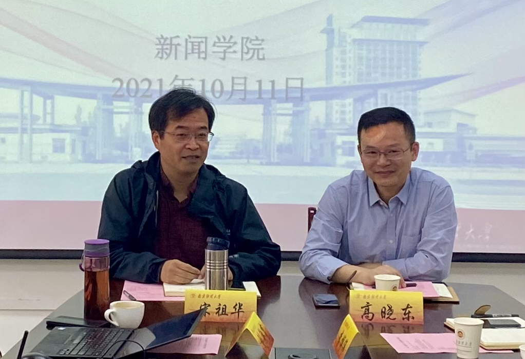 第二个部分是开学典礼,刘泱育副院长主持,新闻学院高晓东书记、宋祖华院长等学院领导以及朱云教授和蒋建梅教授等研究生硕导出席。